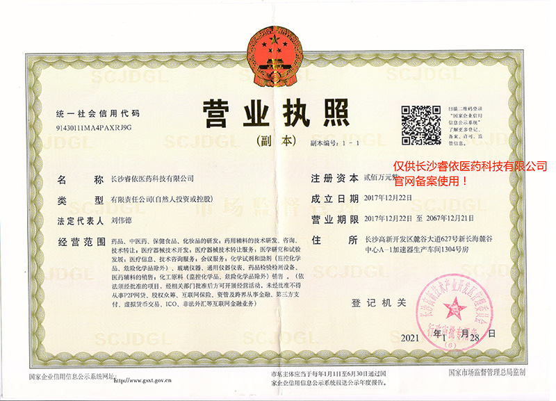 Copyright © 2021 長沙睿依醫藥科技有限公司 地址:長沙高新開發區麓穀大道627號新長海麓穀中心A 1304號房 營業執照查閱 湘ICP備2021014380號-1 網站地圖
